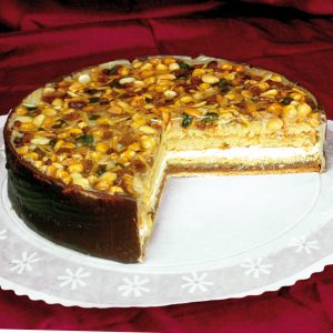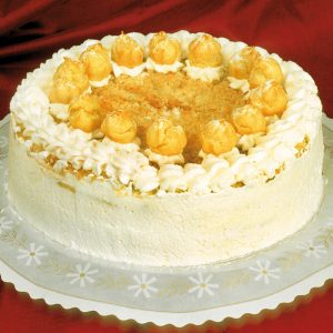 Marzipantorte, Mokka-Creme, Whiskey-Torte, Weiße Lady, Nussbuttercreme, Mandeltorte, Rembrandt-Torte, Frankfurter Kranz (2 Größen) und Aida-Torte.